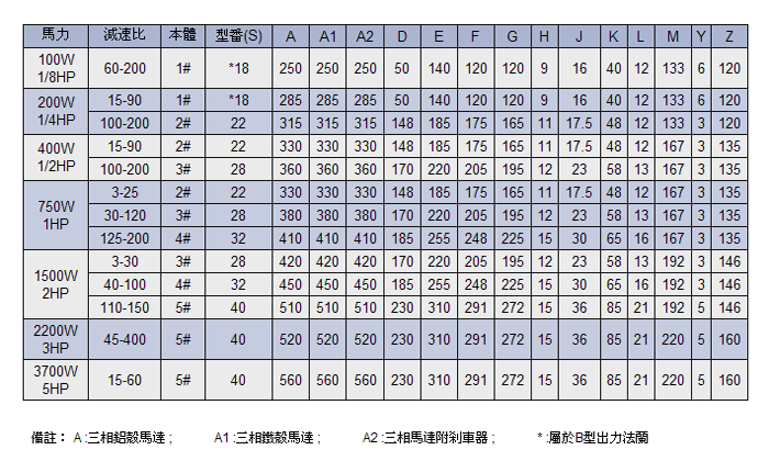 模型代号TYPES : CH, CV, CHM, CVM, CHD, CVD 马力 CAPACITY : 100W-3700W 减速比 RATIO : 3, 5, 10, … 1800